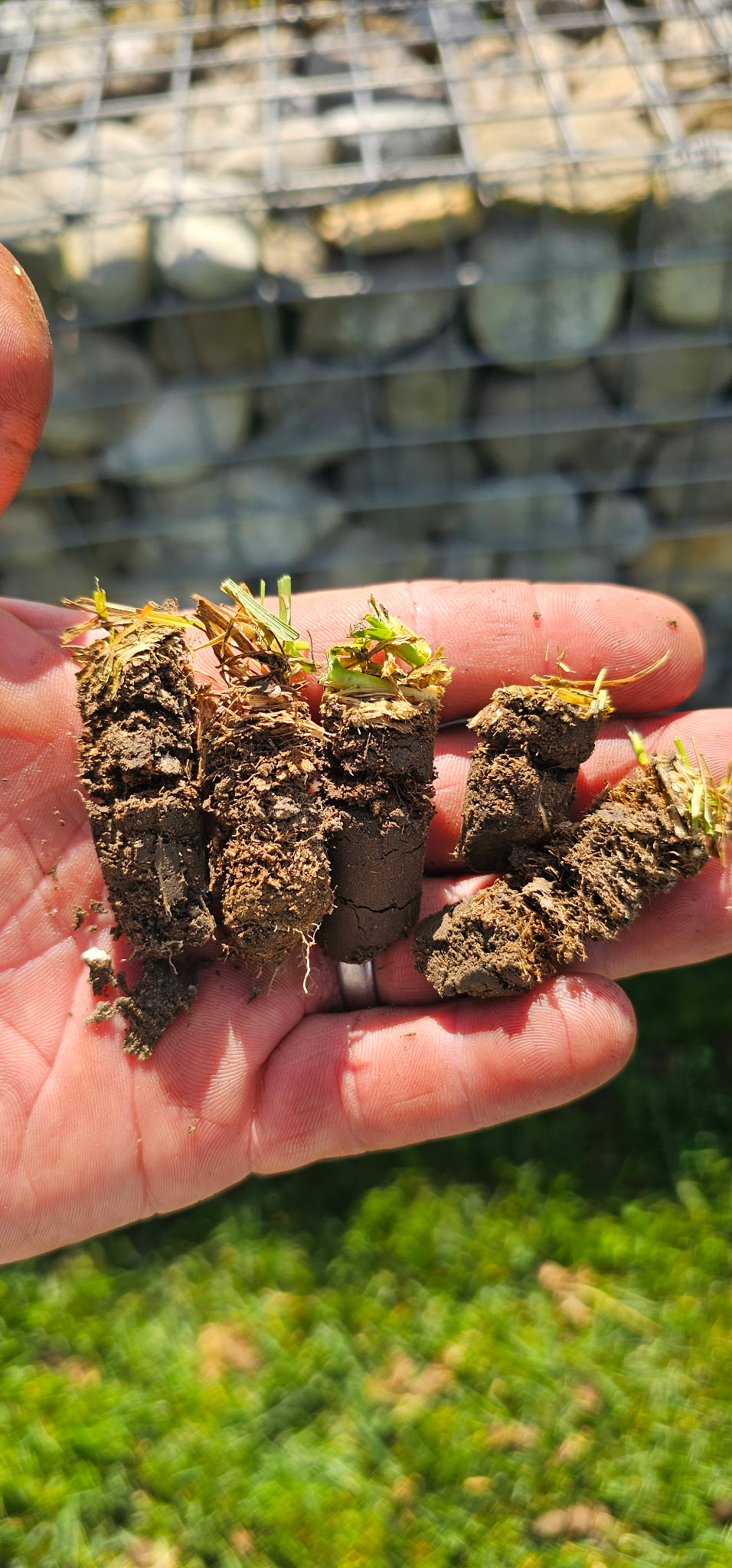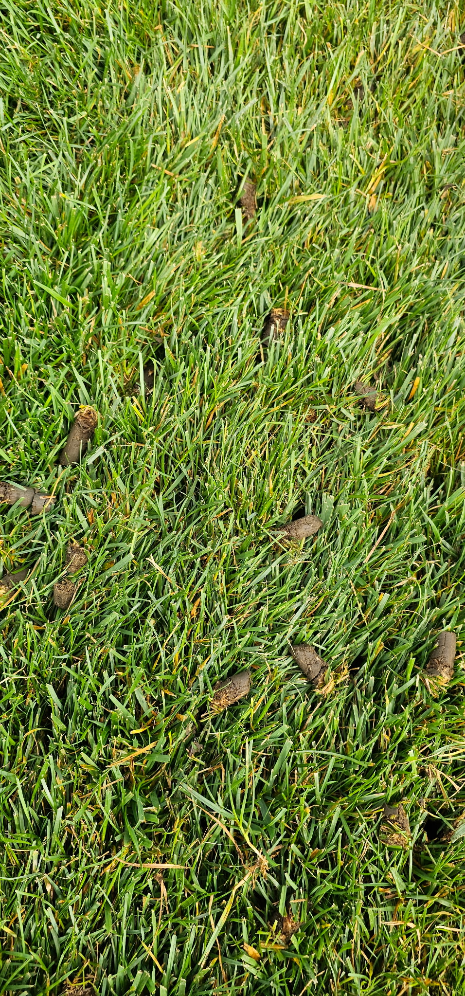 - Aerating: Compacted soil makes it difficult for water, oxygen, and nutrients to reach the roots. Core aeration solves this by removing small plugs of soil, improving drainage, creating space for new seed, and enhancing root growth.